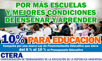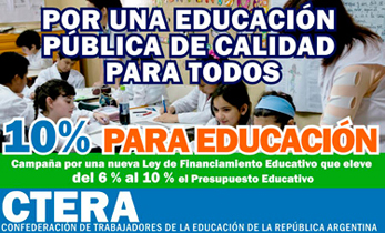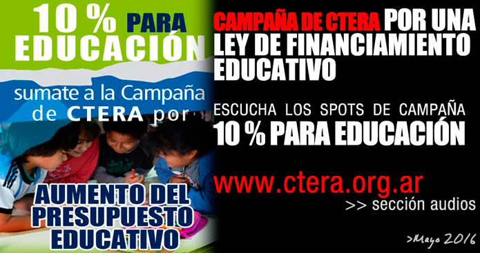 SPOTS DE LA CAMPAÑA DE CTERA POR UNA LEY DE FINANCIAMIENTO EDUCATIVO 10 % PARA EDUCACIÓN